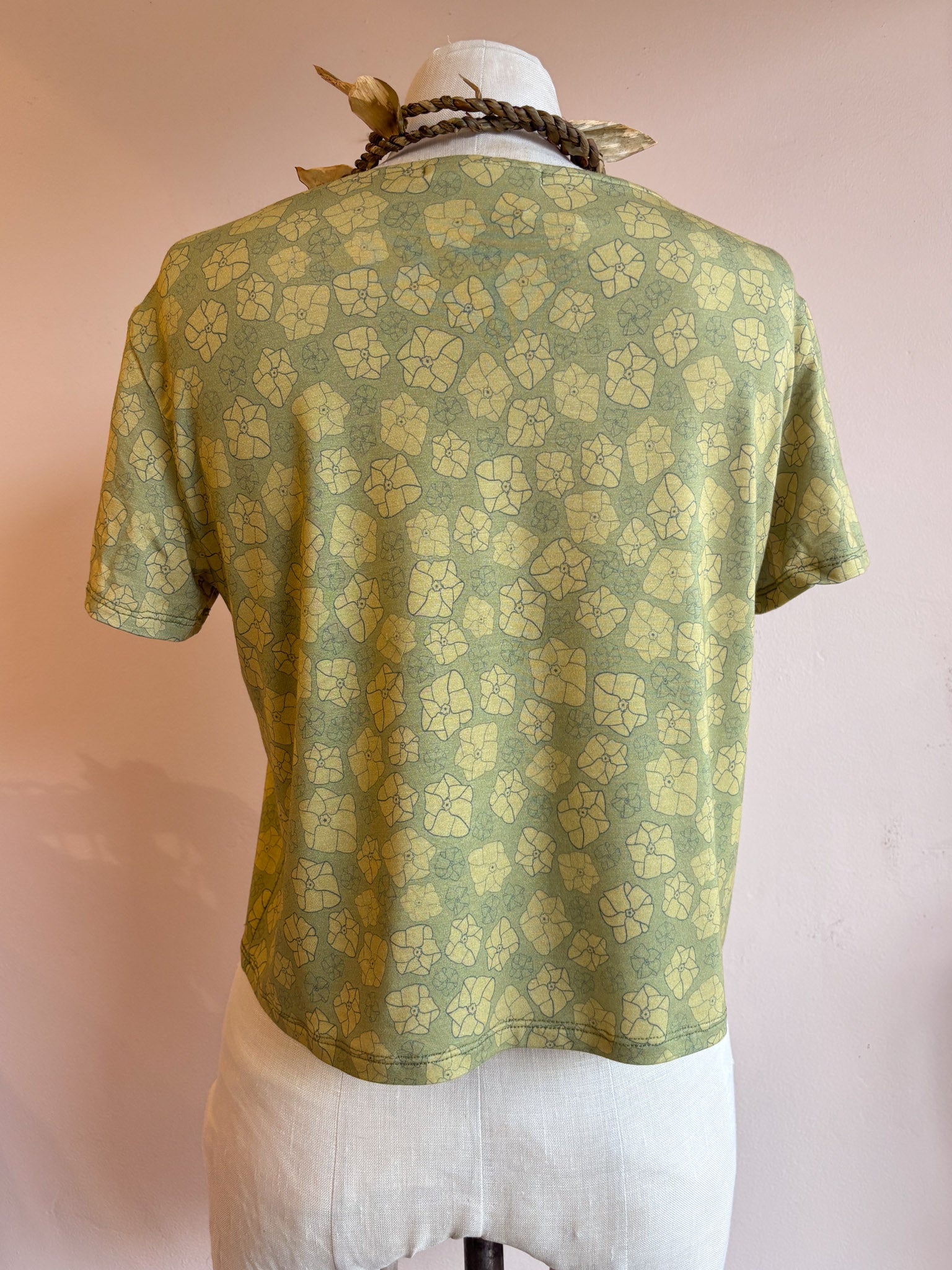 Comfy and fresh top to style with your favorite high-waisted bottoms. Boxy cut crop top with a set-in sleeve.