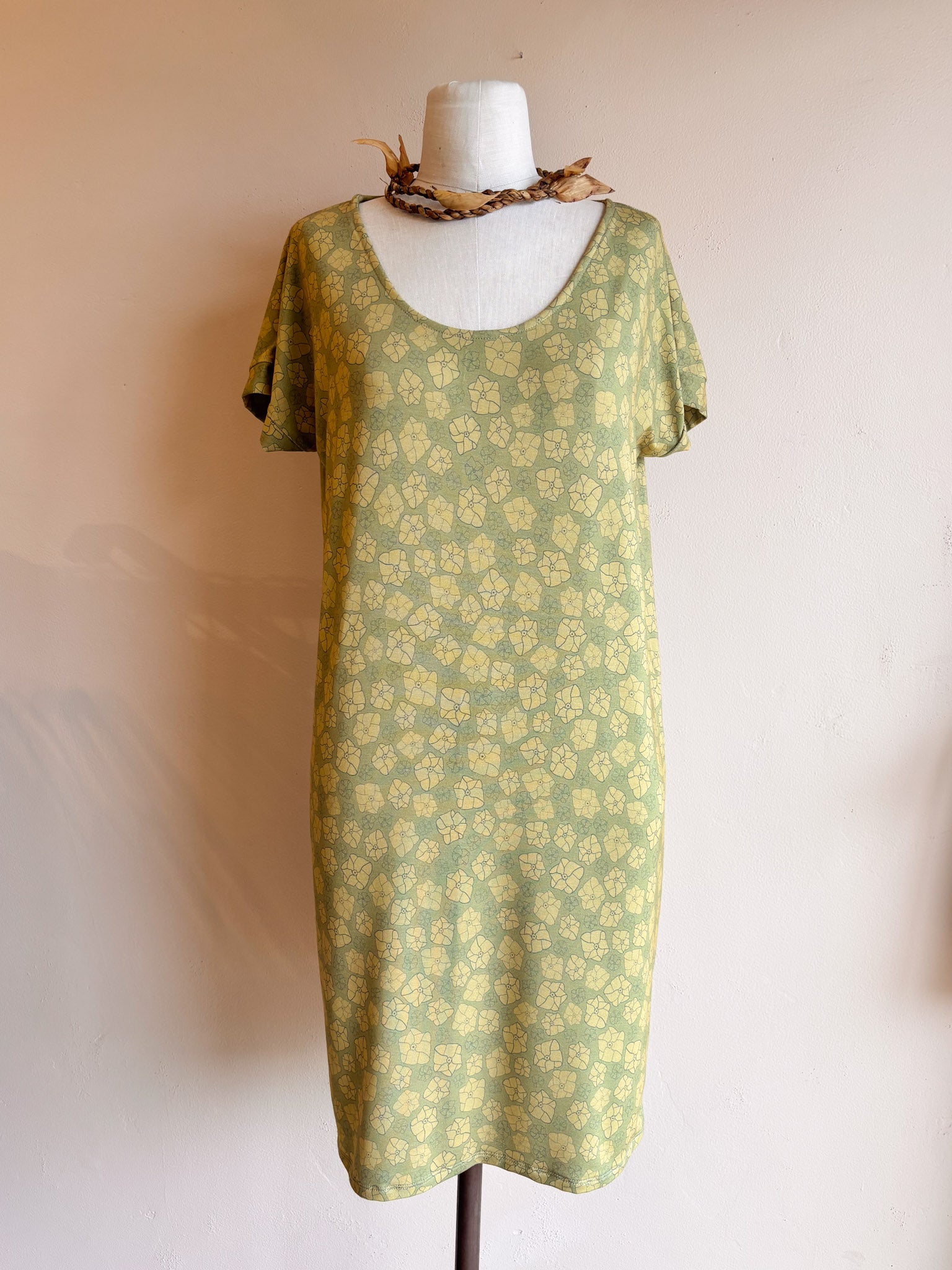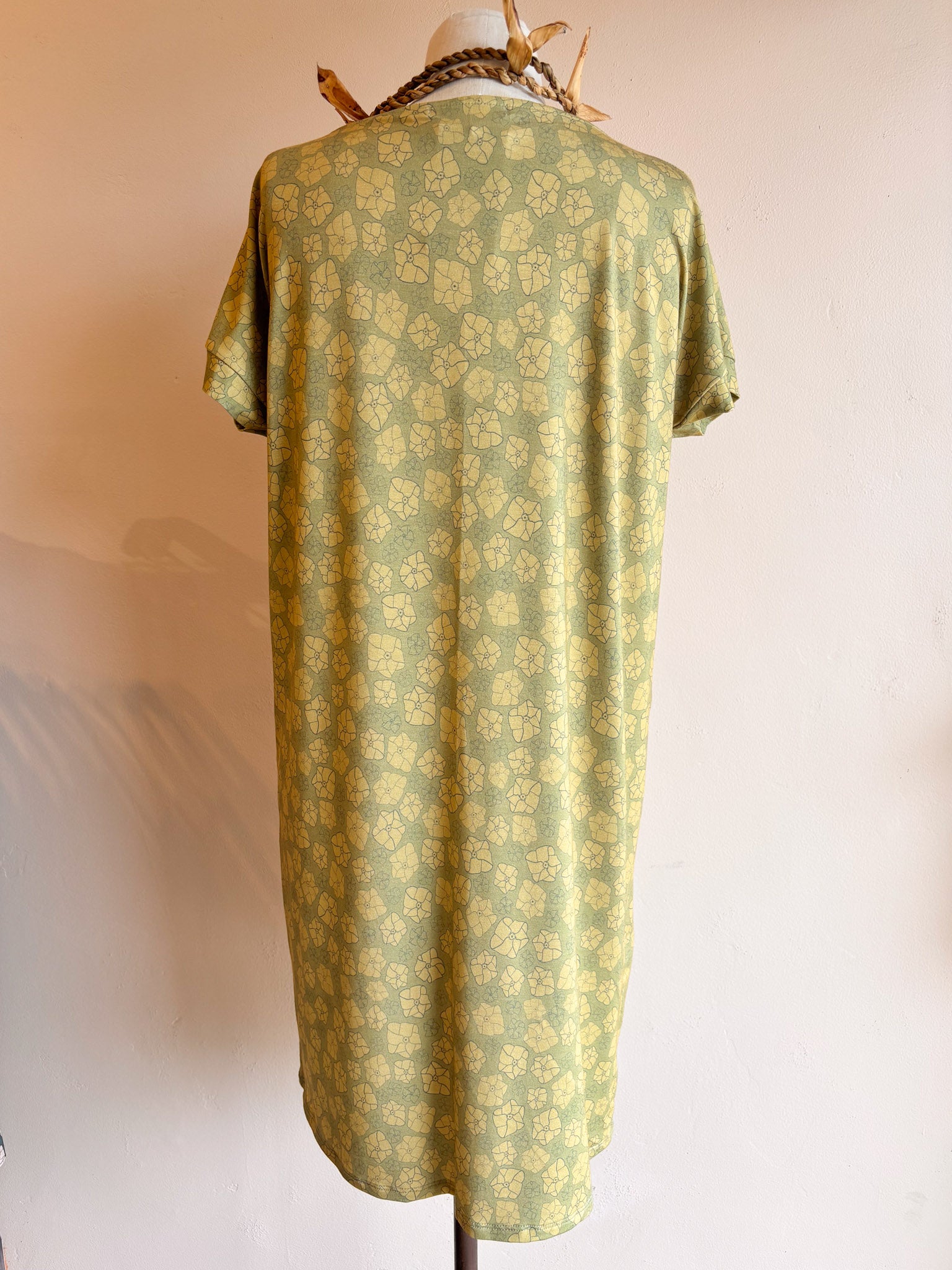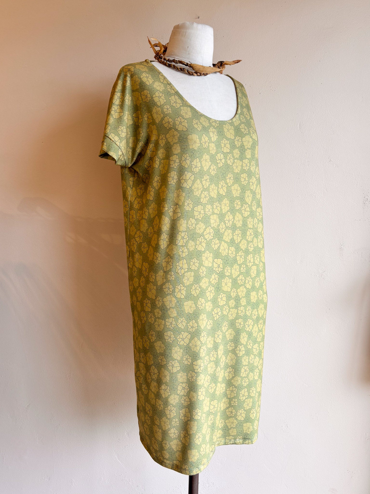A mini length style at about 36" in length with ease through out the body. Slightly oversized, boxy cut with a cuffed sleeve detail and perfectly scooped neckline. An easy, super wearable style just like our Uluwehi Dress but without the drape. Available in sizes XS, S/M, M/L and L/XL.