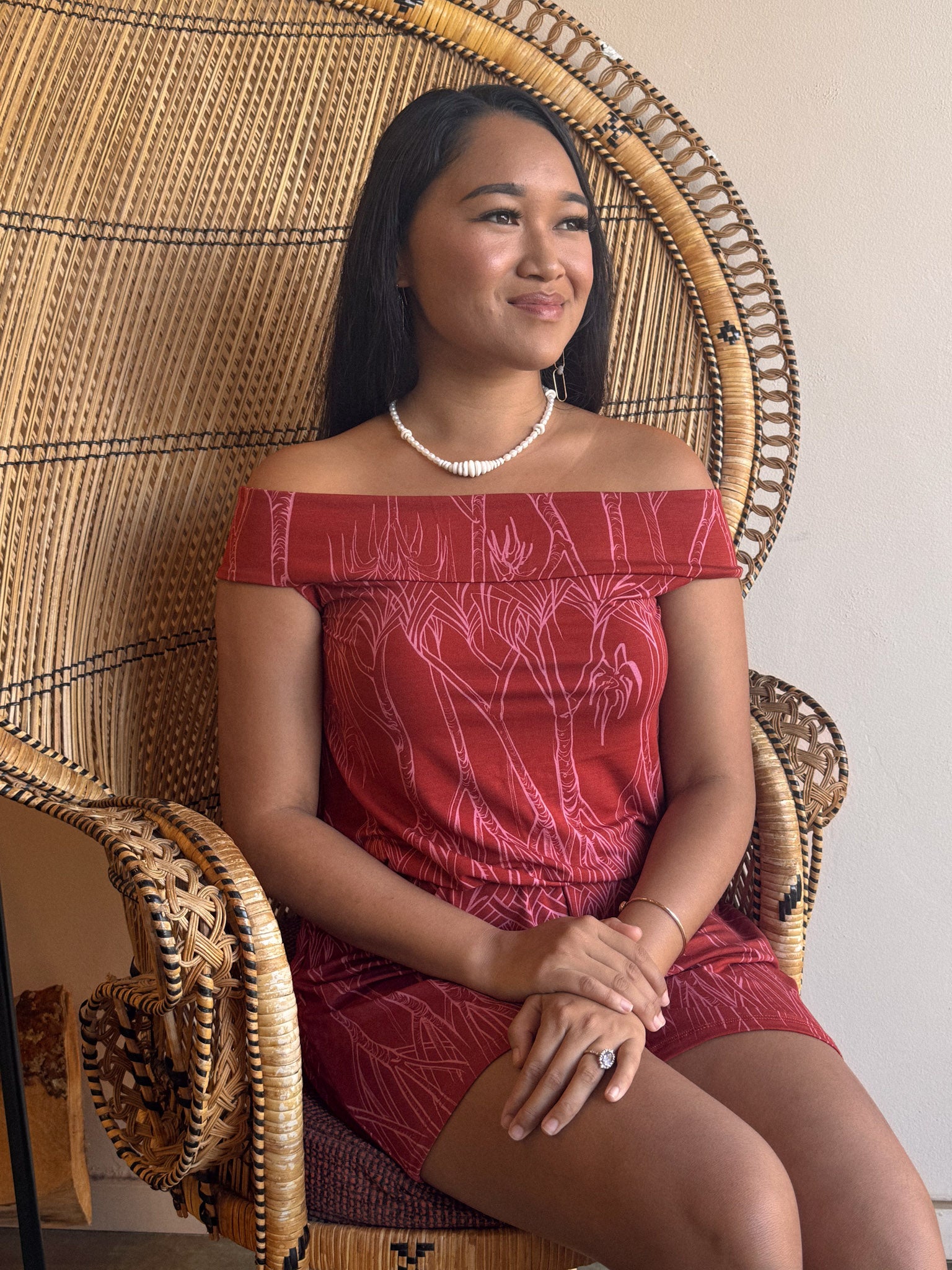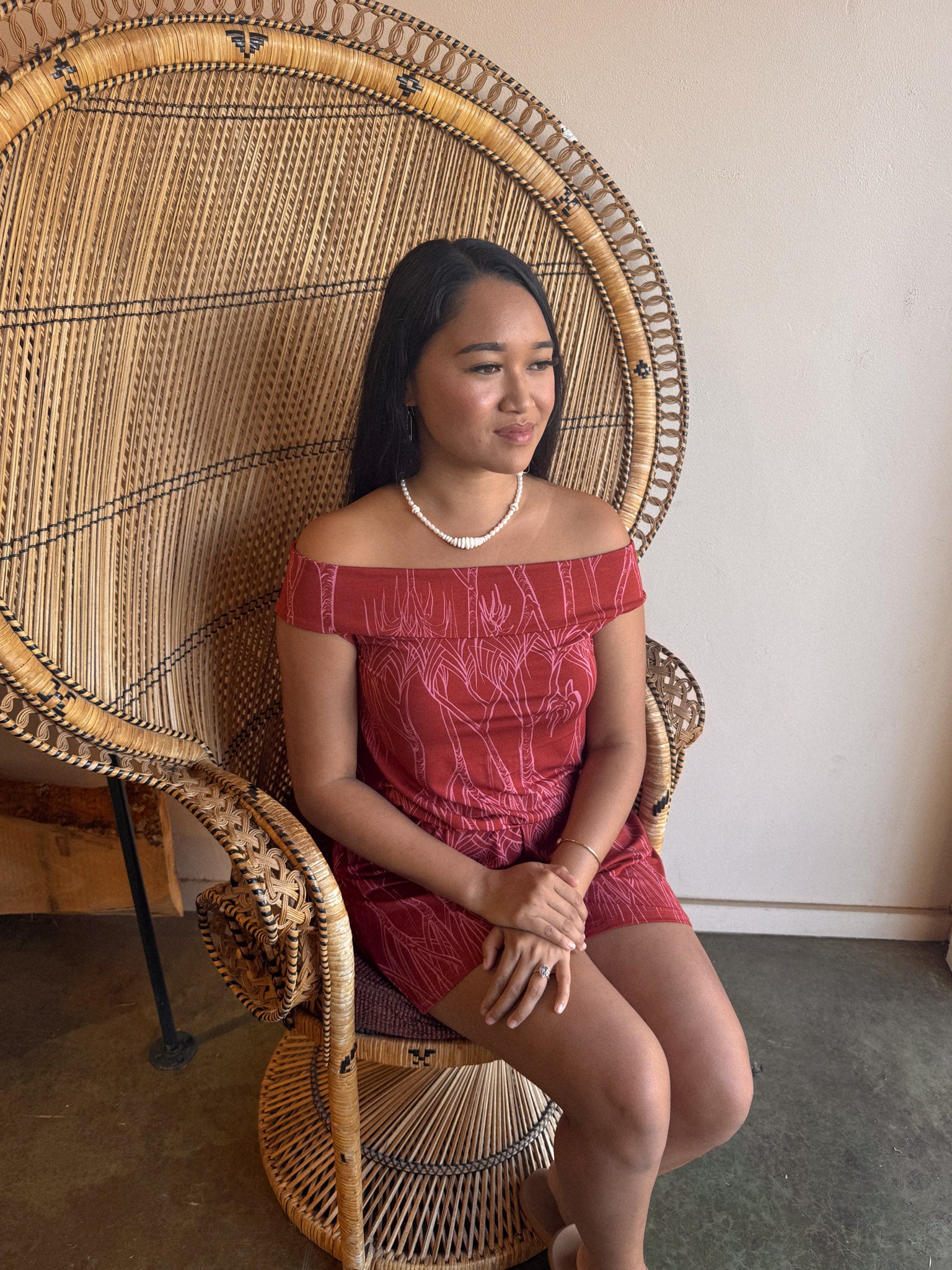 Soft, simple, and made to move with you. Our Off-Shoulder Hoku Romper is cut from silky modal knit—lightweight, breathable, and gently draping for an easy, flattering fit. The elastic waistband defines the shape without sacrificing comfort, while the off-the-shoulder neckline adds a relaxed, feminine touch.