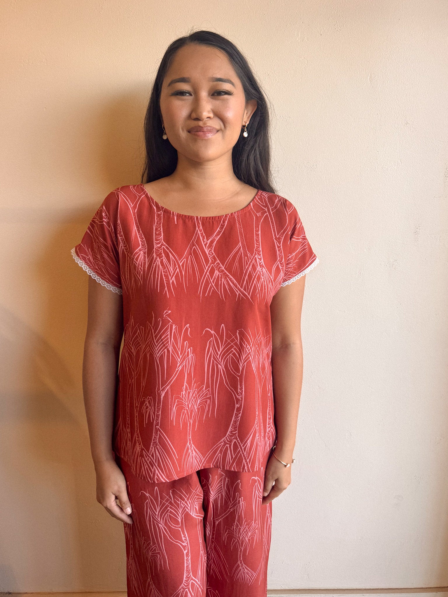 A fresh take on a Kūlua favorite. The Mauna Top returns in soft, breathable woven TENCEL™— elevated with delicate eyelet detailing that adds texture, nostalgia, and a touch of understated femininity. This updated version keeps the ease and flow the Mauna Top is known for while offering a lighter, airier feel perfect for warm island days.