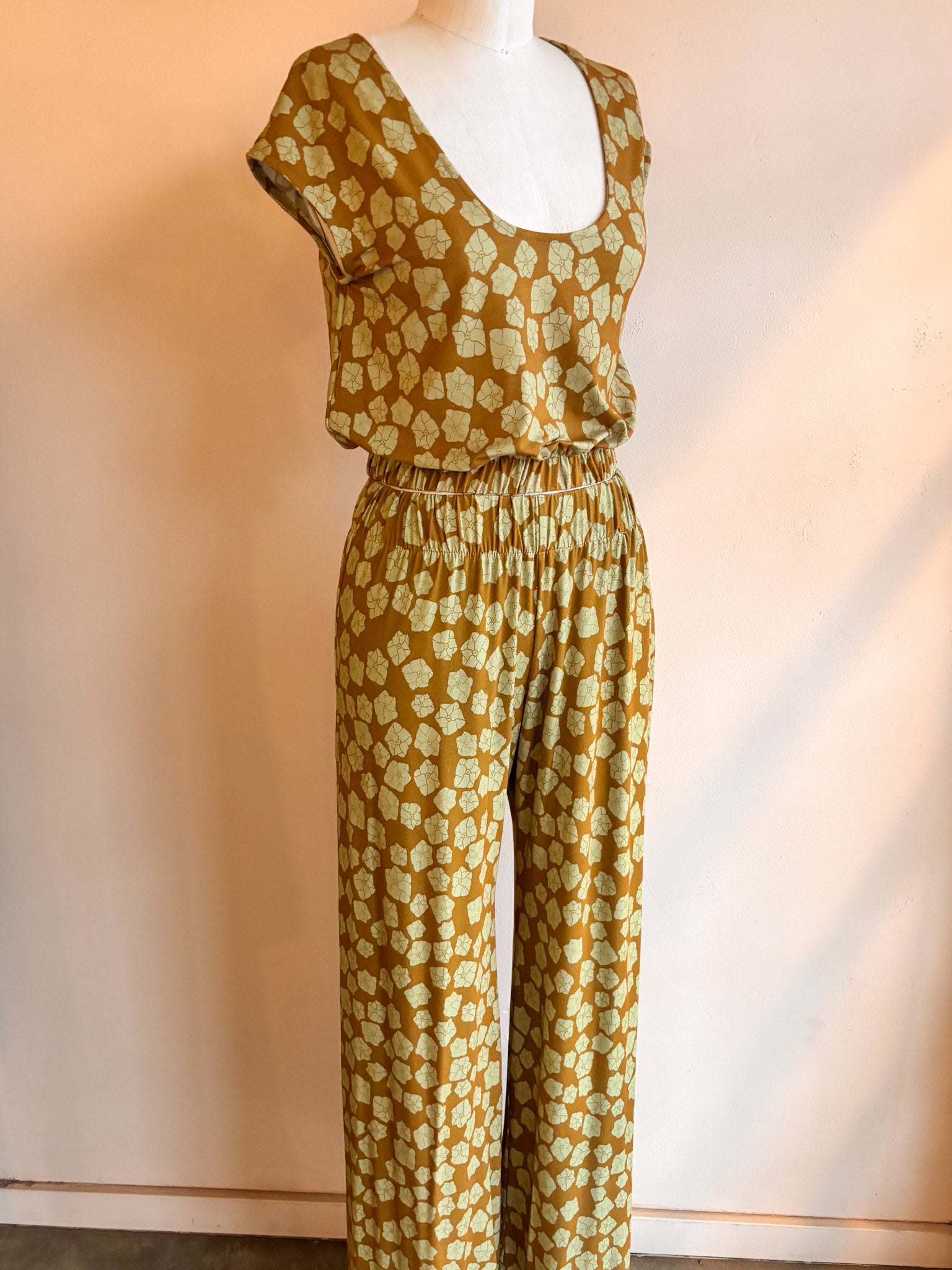 A pretty, sweet top that can be worn either way. Cap sleeve. Cropped length with 1.25" elastic at bottom. Designed to go with our Nanea Knit Pant and an easy to wear favorite. Sizes XS, S/M, M/L and L/XL.