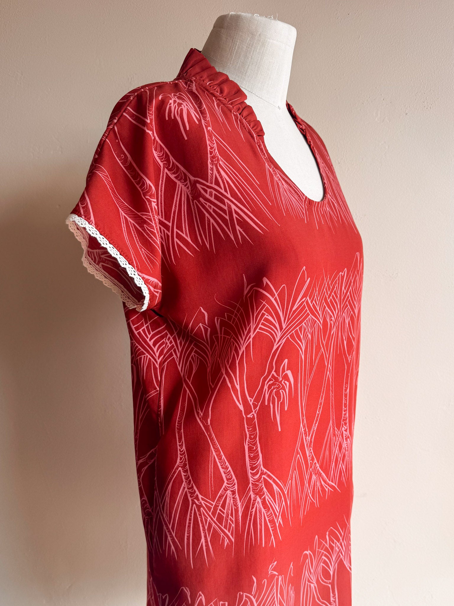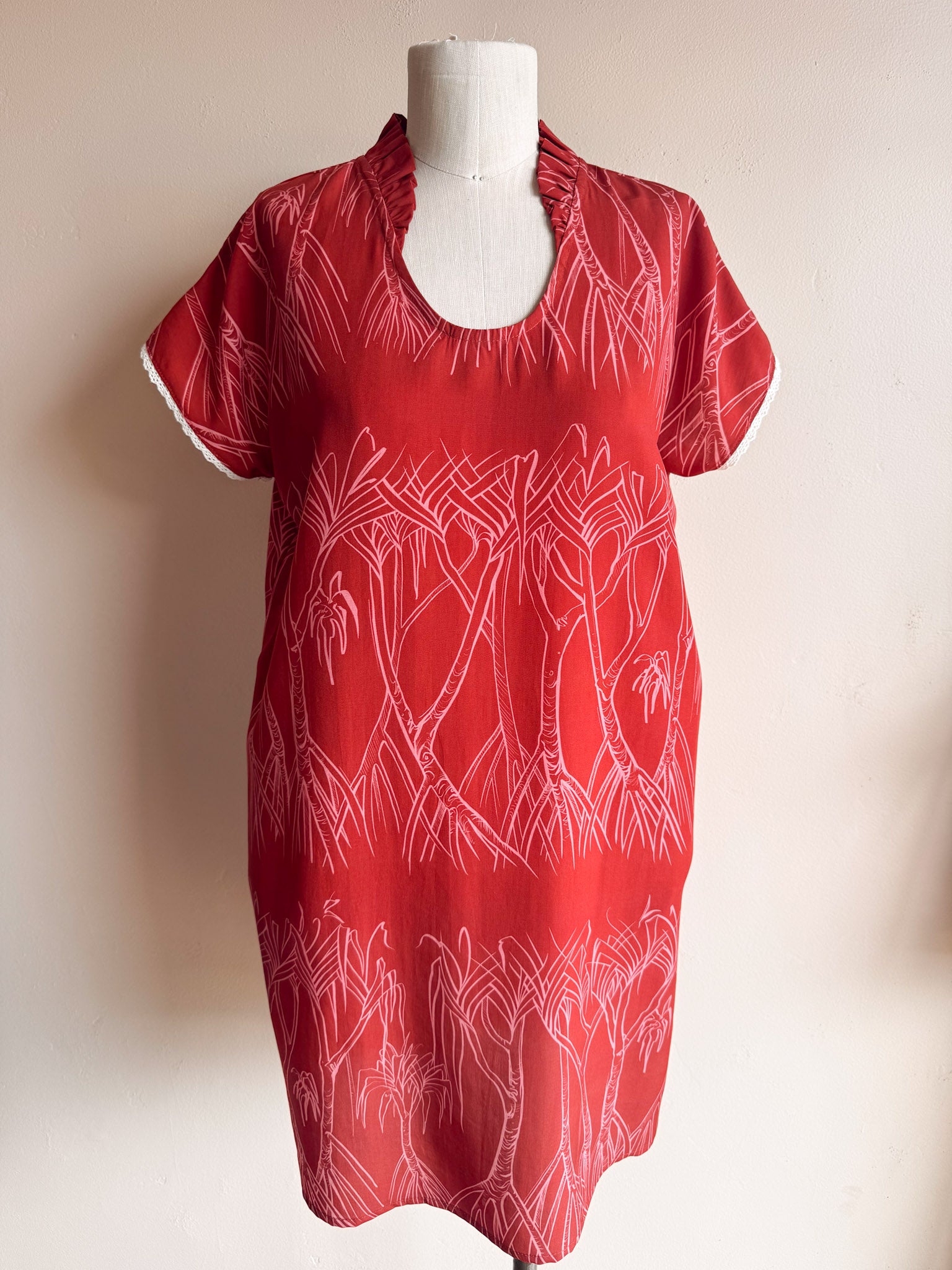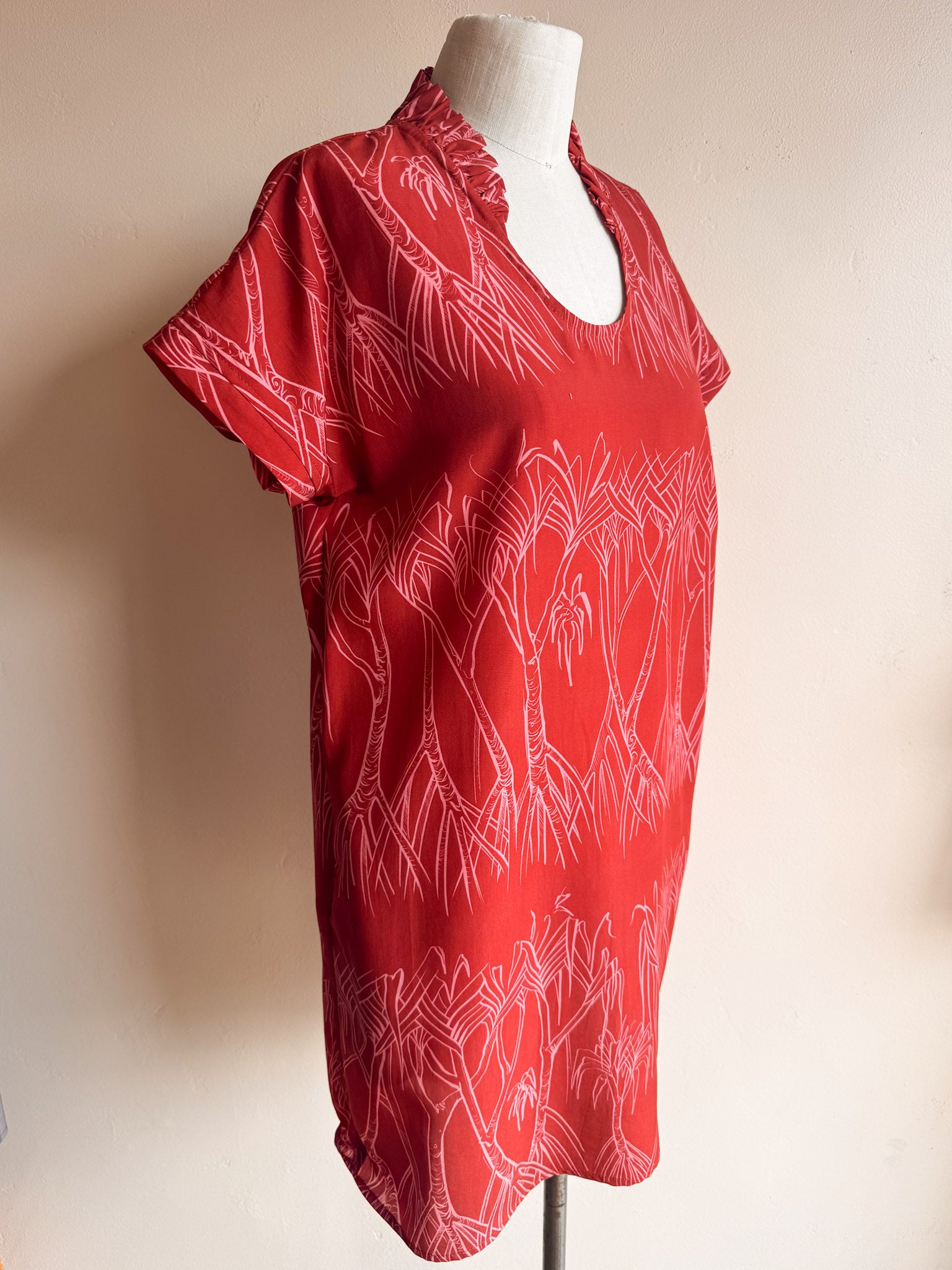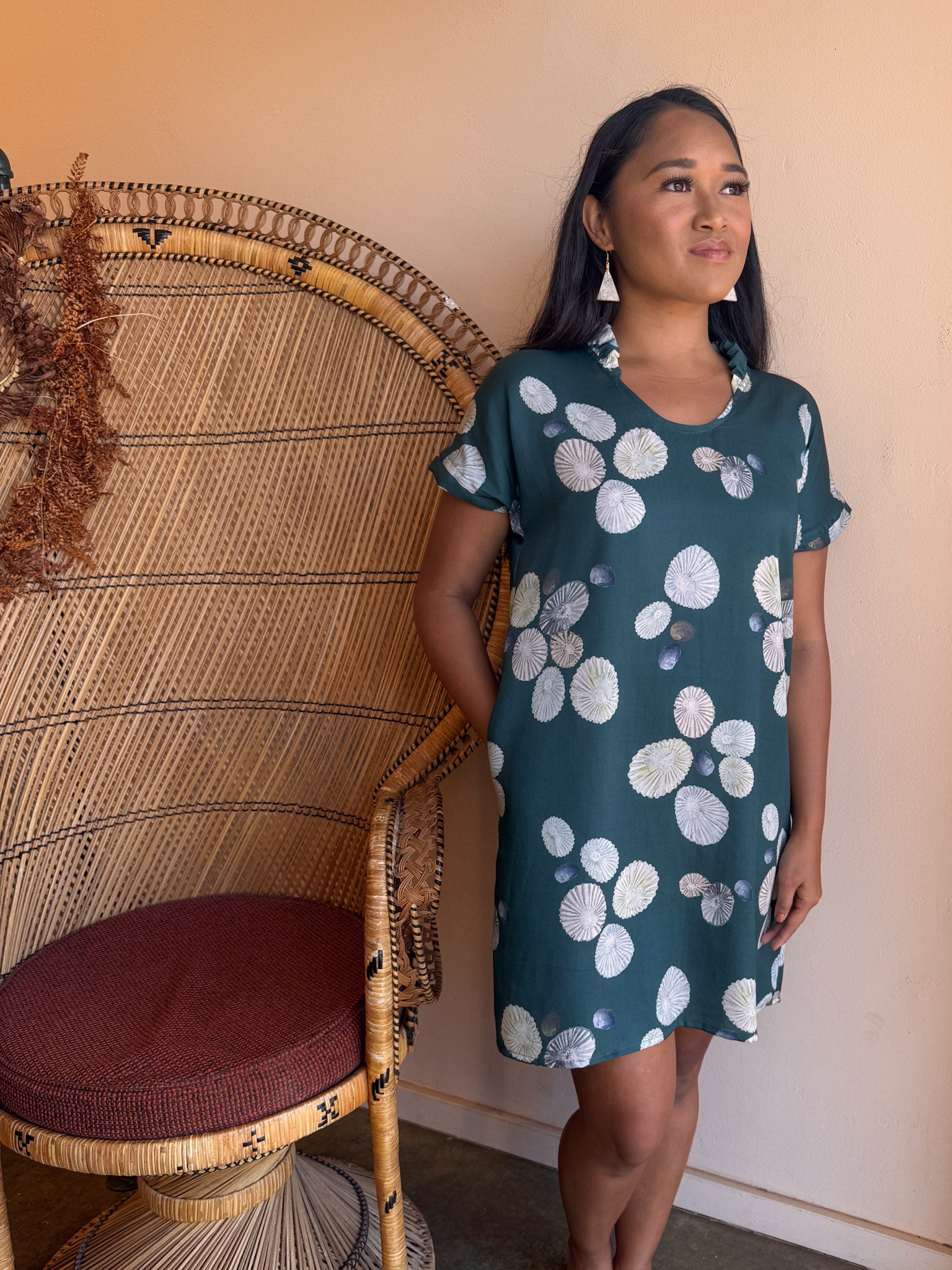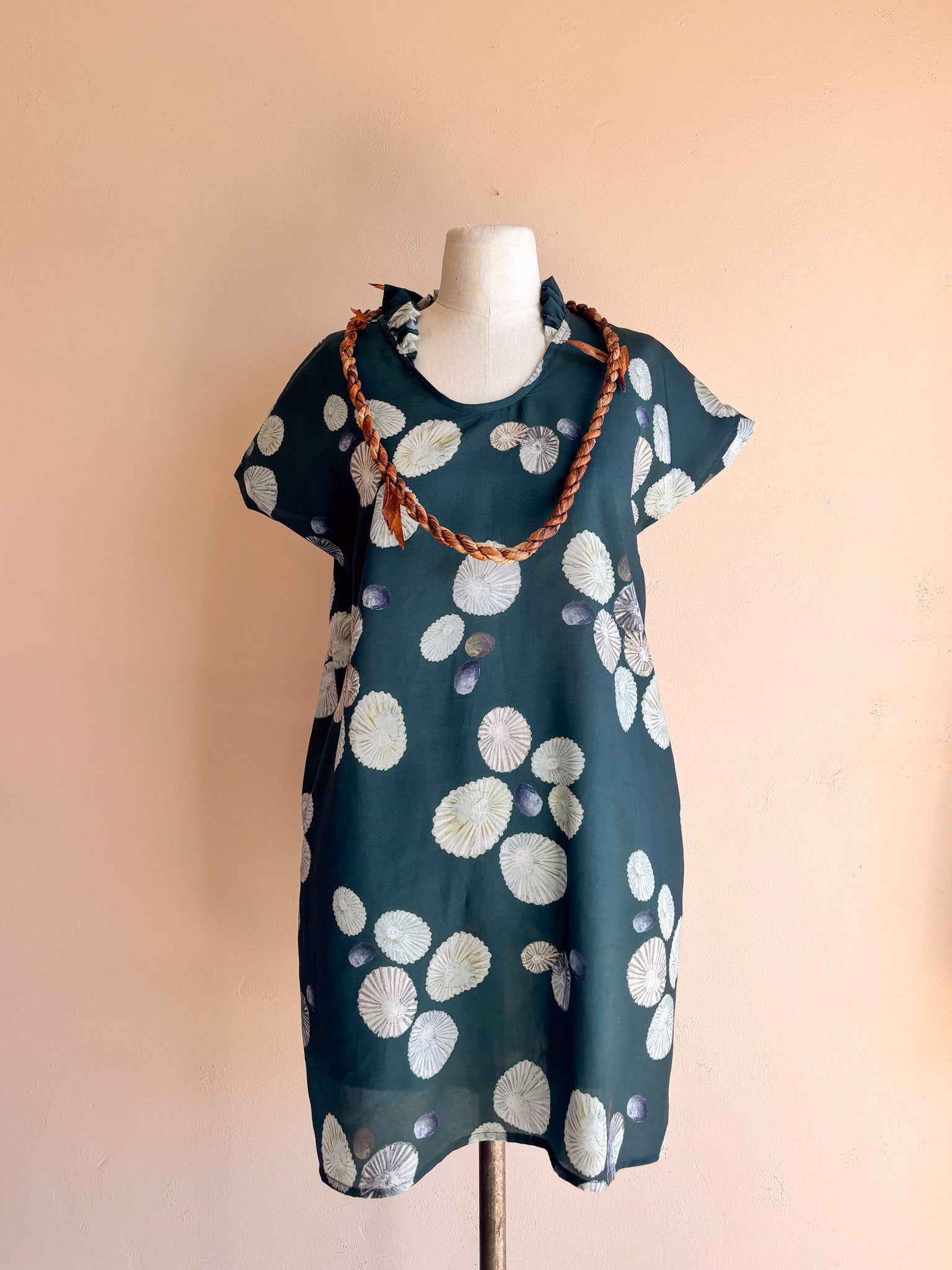 A new -signature- ruffled collar cut to love with a mini twist. The Pua Muʻu Mini is an above the knee length modern muʻumuʻu style with a shorter, capped sleeve.
