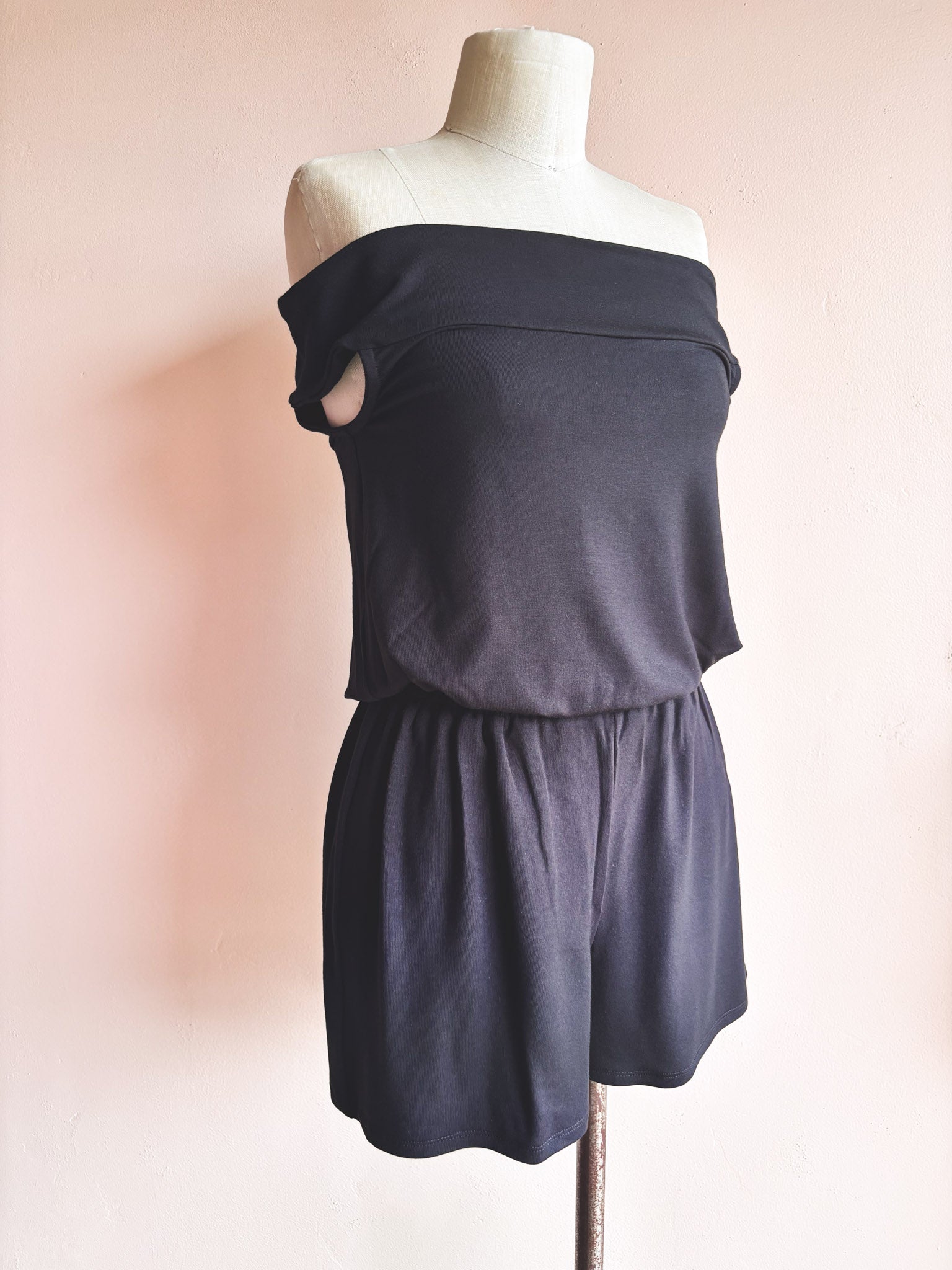 Soft, fluid, and endlessly wearable. Our Off-Shoulder Hoku Romper in solid black is made from buttery TENCEL™ Modal knit—a fabric known for its silky drape, breathability, and gentle stretch. The elastic waistband shapes the silhouette with comfort in mind, while the off-the-shoulder neckline brings an easy elegance that moves from day to night with ease.