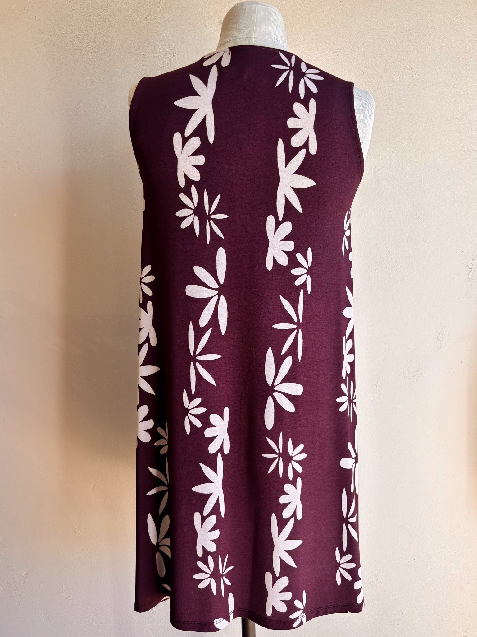 The perfect, easy muscle tank dress is mid-thigh length at about 32" long with a full a-line cut. Crew neckline. Sizes XS-L/XL.