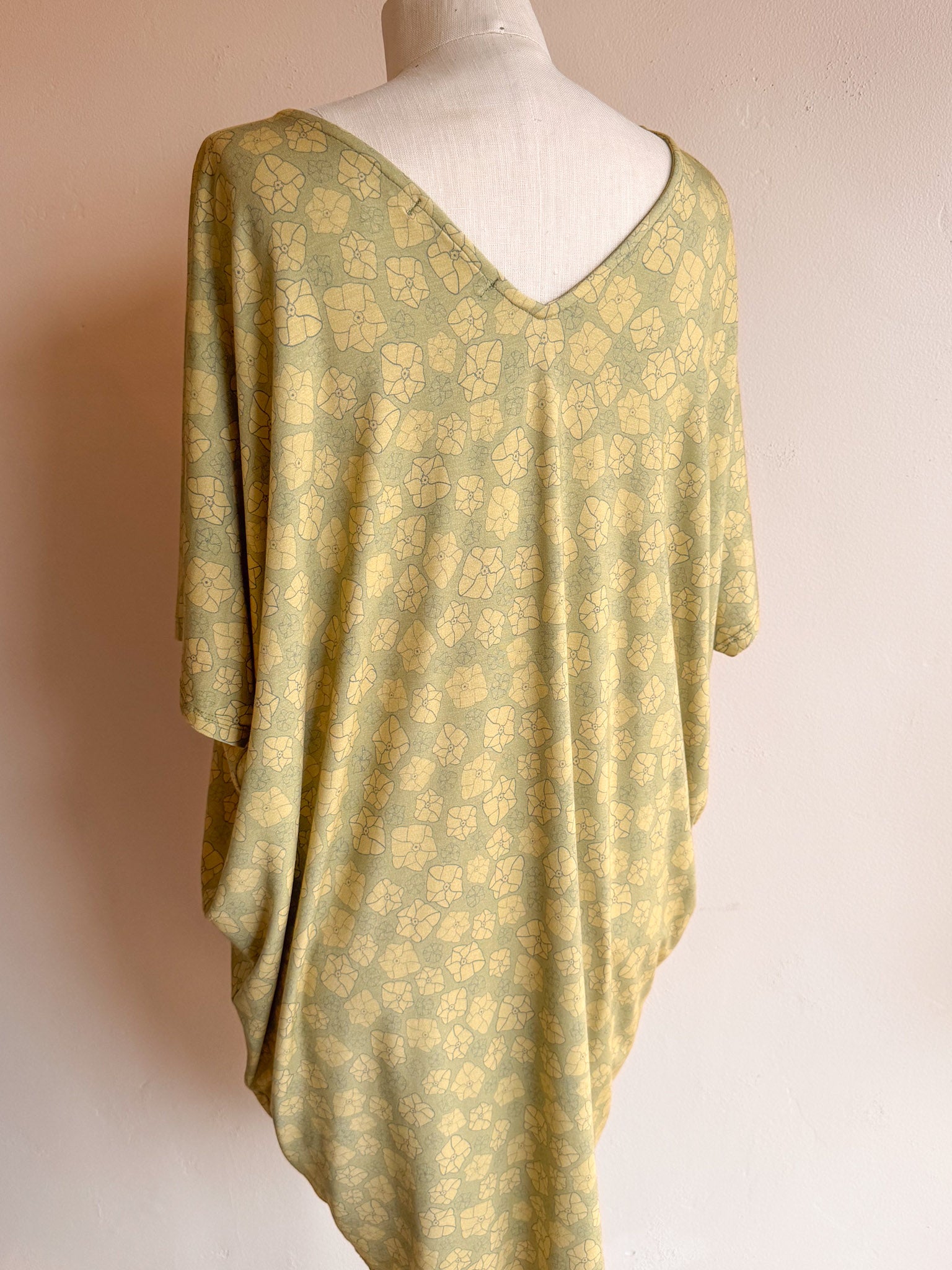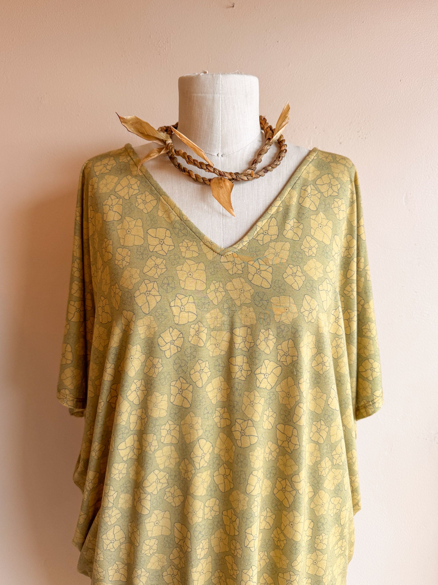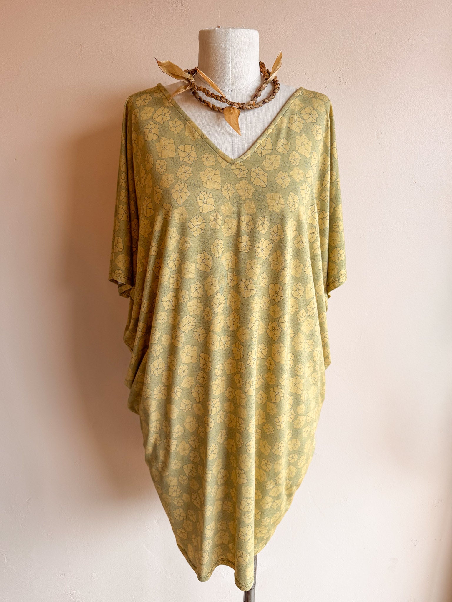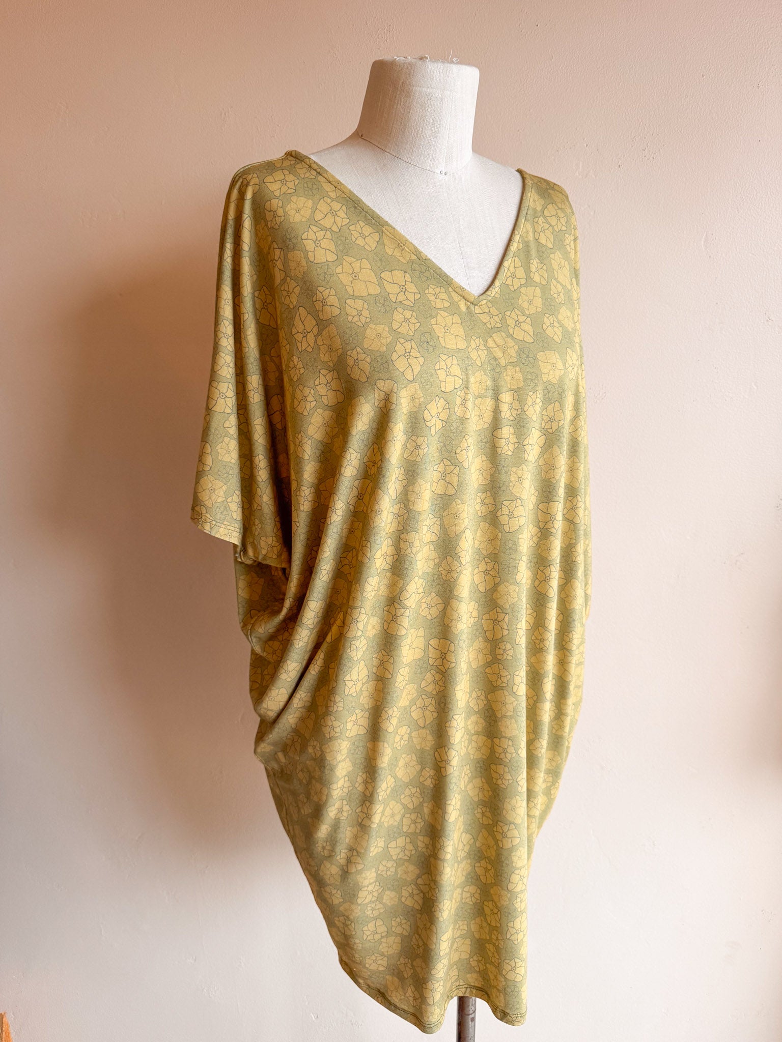 One of our original Kūlua styles and everyone's favorite dress. Wear it for day with your favorite slippers then switch up your accessories for a night out. So comfortable, easy, and sophisticated with the perfect amount of drape. Classic cut in a mini length with a “V” in the front, a “V” in the back, and a half length sleeve. S/M Length ~35" Also available in Regular and Midi length.